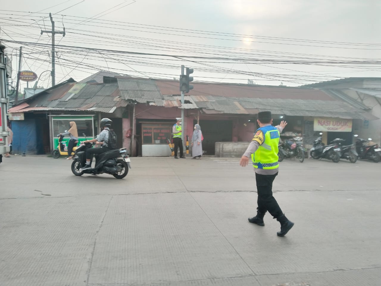 Optimalkan Pelayanan Pagi, Unit Lantas Polsek Cikande Gelar Strong Point di Titik Rawan Macet